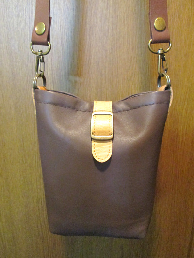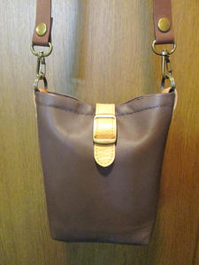 牛本革のハギレで作った巾15cmくらいの小さめのものです。
