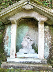 おびんずる様はお釈迦さまの弟子で、ビンドラ・バラダージャと言い、おびんずる様の身体を撫でて自分の痛いところを触ると治る、と言われています。