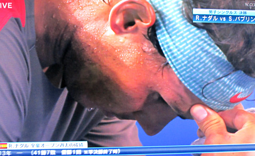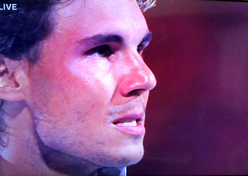 あるテニスのブログでは、偉業を達することができなくて涙するナダル、と書いてありましたが、それは違います。