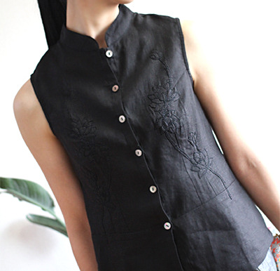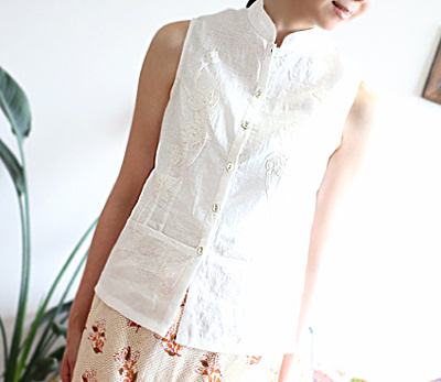 リネンのチャイナ風ノースリーブ。刺繍が入っています。