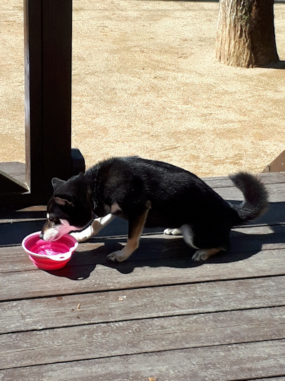 もう誰が見ていようが、お構いなしに水を飲むアンク。笑