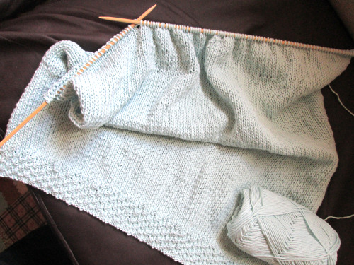 さて、編み物の進行具合ですが、考えてたら嫌になるので、ただひたすら編む。