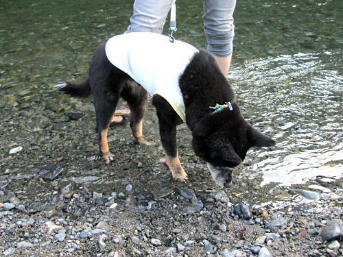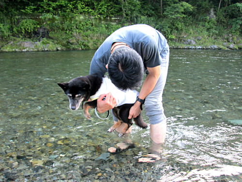 夏の早朝、何回か三匹を川遊びに連れていったものでした。