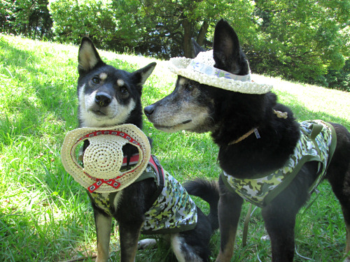 夜の楽しみのためにも、早朝から二匹を連れて公園。