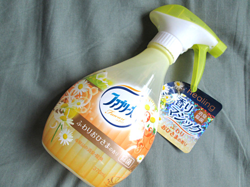 水をベースに「トウモロコシ生まれの消臭成分」、化粧品や薬用石けんに使われているものと同じタイプ「有機系の除菌成分」、野菜や果物に含まれる酸と同じ成分が配合されているということなんですが、それと同時に”ふわりおひさまの香り”というのが気になるじゃないですか。