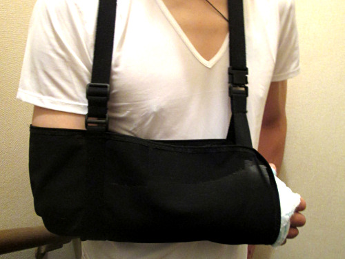 さて、ダンナのその後ですが、布の三角巾は目立つし、肩もこるので、これを買いました。