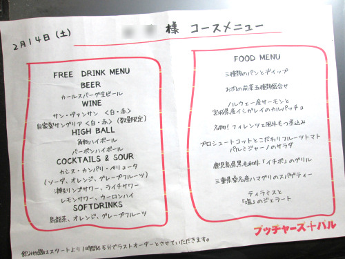事前にコースで予約をしていたので、テーブルにはこんなメニューが。