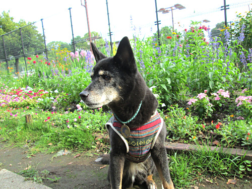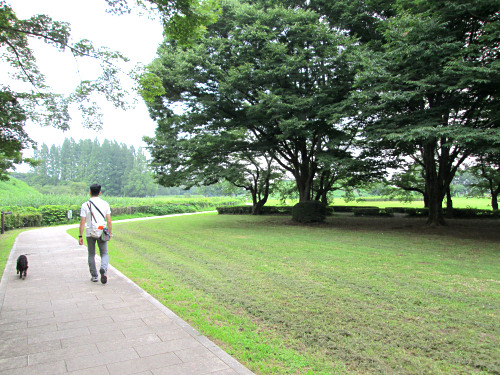 今日は草がびしょびしょだったので、アスファルトの道を長く歩いたせいか、ナイルはちょっとお疲れ気味。