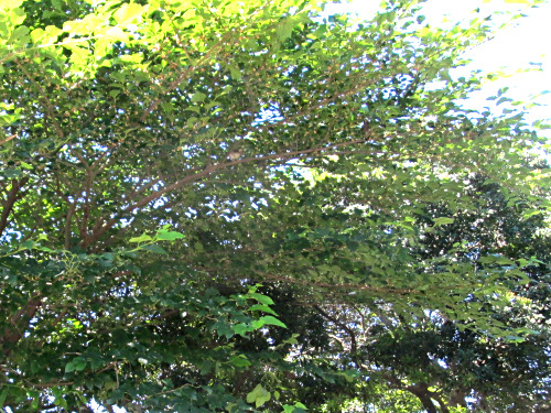 駐車場の傍に、それはもう鈴なりに実をつけた木があるんですが、ここに何十羽という鳥が群がっていました。