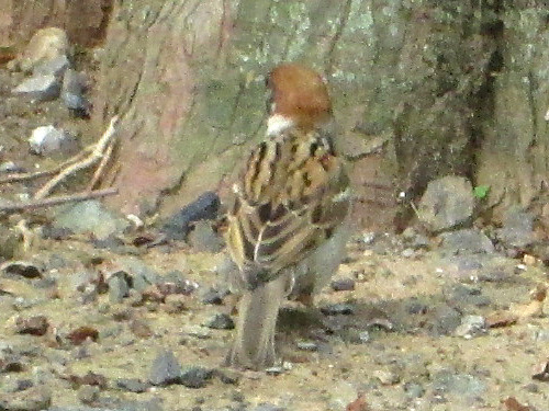 こちらは雀の子供なんですが、一羽だけで仲間は見当たりません。