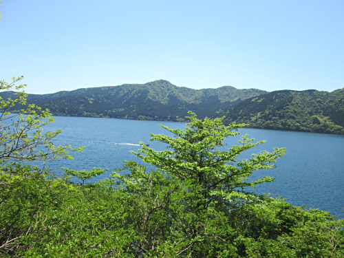 時折姿を見せる芦ノ湖。