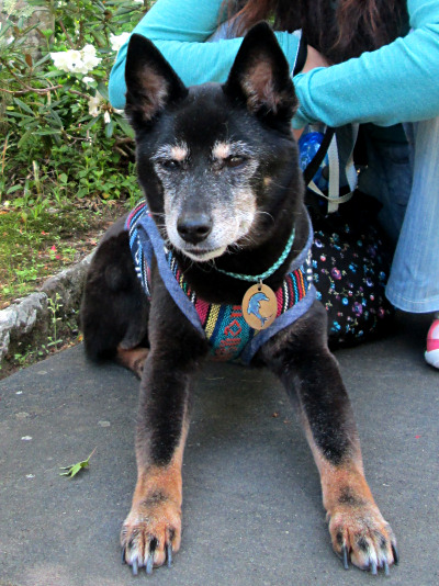 たくさん歩いたので、人間も犬も水分補給。