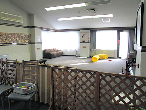 下駄箱に犬の名前が貼ってあるところからして、お犬様ホテルです。