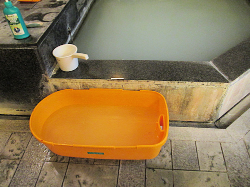 もちろん、人間と一緒には入れませんが、小さいバスタブに犬も入れます。