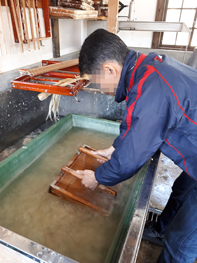 乾かしている間に、紙漉きを教えていただきました。