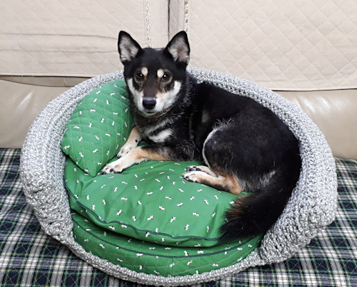 犬たちのベッドのカバーも、ずっと前から麻綿。特に夏は気持ち良さそうです。