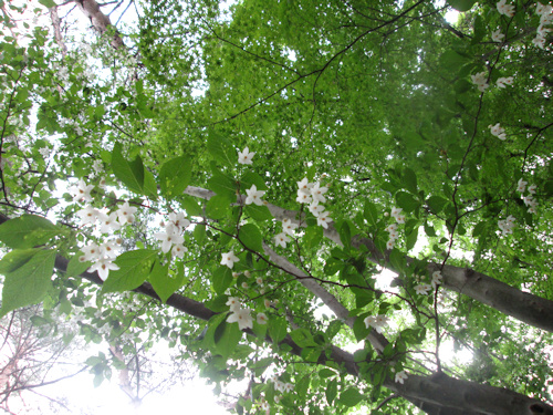 地面に白い花がたくさん落ちていたので、上を見上げると…。