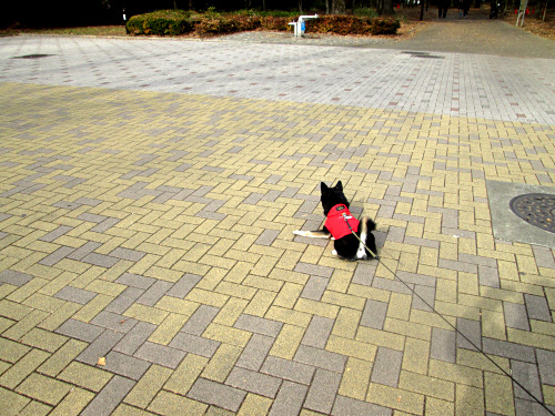ということで、夕方から二匹はお留守番だったので、昼間は公園に連れて行って疲れさせなくてはなりません。