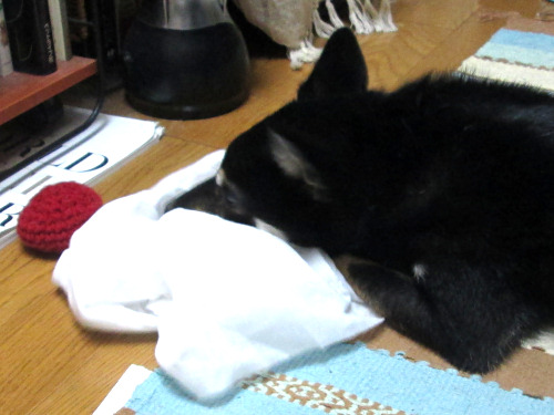 病院から一緒に来た三角巾なんぞは、もう食いついて振り回して。