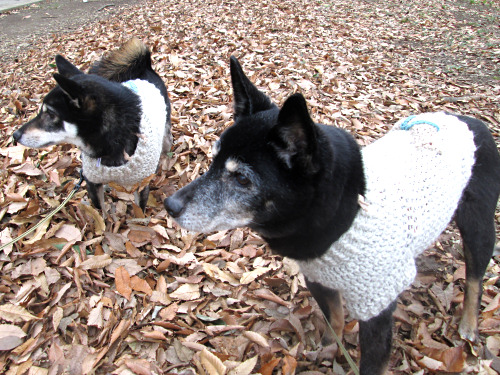 以前に編んだセーターを着てみました。