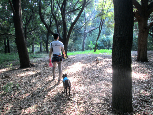 最終日、ダンナが会社に行く前に、早朝に二匹を連れて公園に行きました。