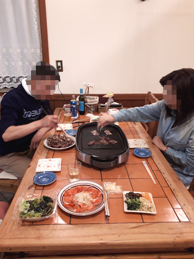 皆、結構疲れたし、外はだいぶ気温も下がって寒かったので、満場一致でBBQから室内のプレートに。