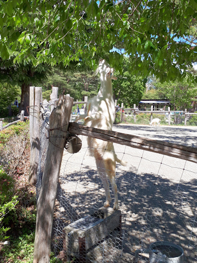 頑張れーっ♪と応援していると、一匹のヤギが近づいてきて、