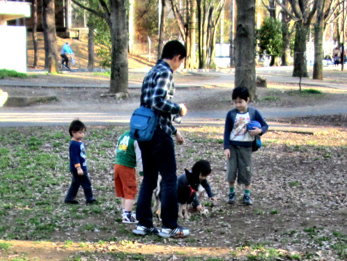 人の少ないところへ移動して、持ってきたボールで遊ぼうと思ったのに、全然その気なし。