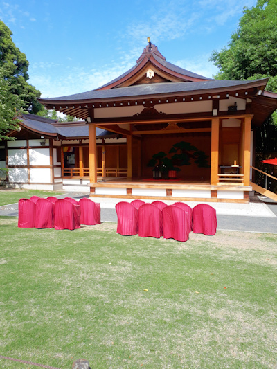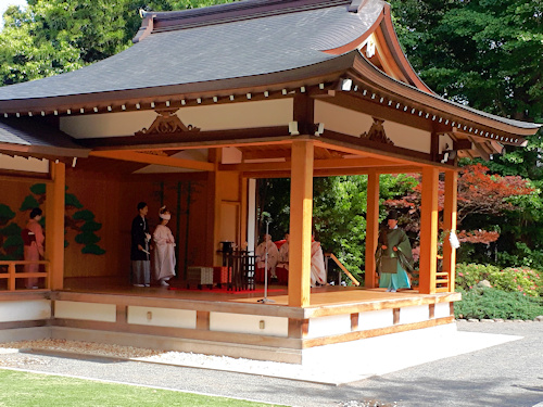 お参りをして戻ると、能楽殿では結婚式が行われていました。