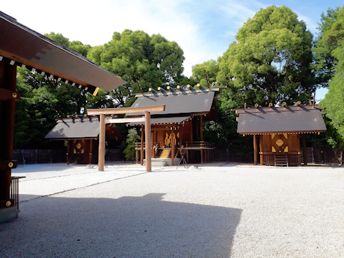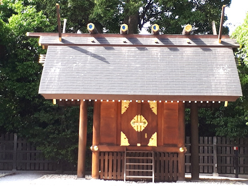 天照大御神をお祀りし、左右の摂社には、右に月読命、左に須佐之男命が祀られています。