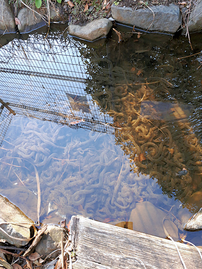 ここは資料館の中にある唯一料金を払って見られる底抜池。