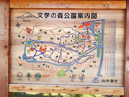 約26,100坪の自然公園の中には三島由紀夫文学館や徳富蘇峰館の他に、山中湖にちなんだ句碑、歌碑(レプリカ)が点在しています。