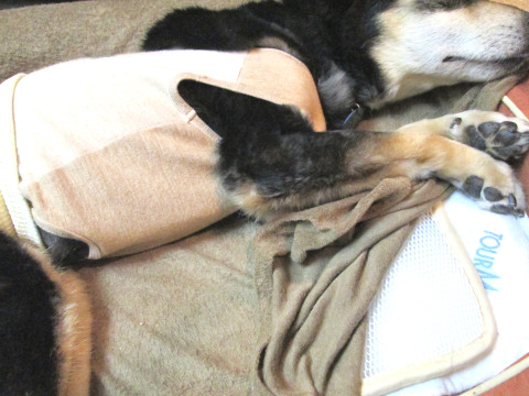 下にトルマリンのマイナスイオンシート、フュージョンの目に爪が引っ掛からないように上には竹布を掛けています。