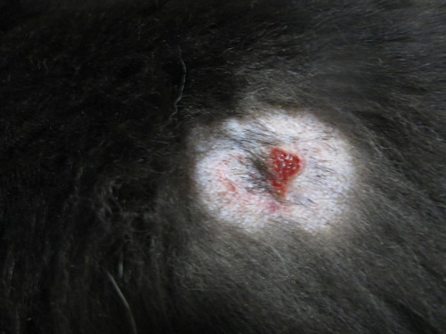 結局、毛を刈り取られ、消毒してそこにもオゾンクリーム。