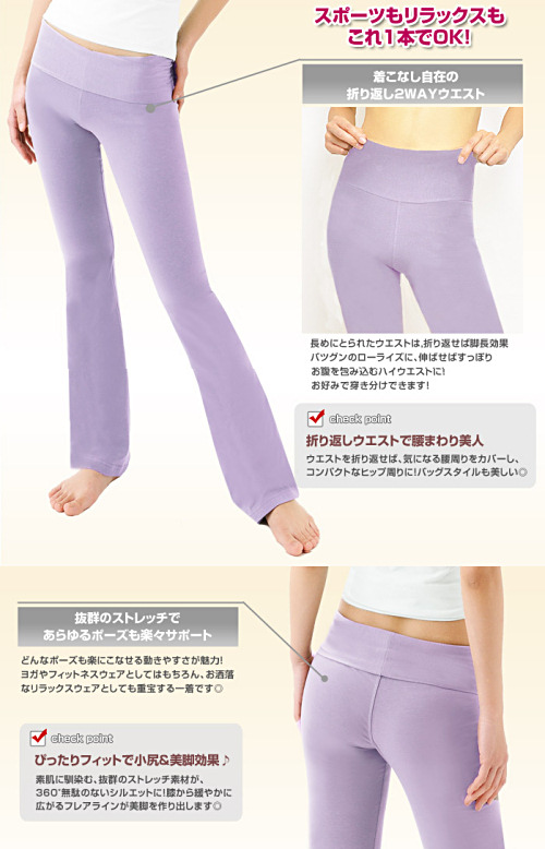 同素材ではセミフレアだけでなく、ショート、カプリ、レギンスなどもあります。