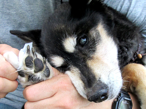 犬たちの世話は、ダンナと平等というのが基本なので、間に合う時には二回目夜の注射はダンナがすることになっています。でも、ダンナは自分に注射をされる時には、される場所をじっと見るタイプで、犬にするのもなんとも思わない人なので簡単に済ませてしまいます。