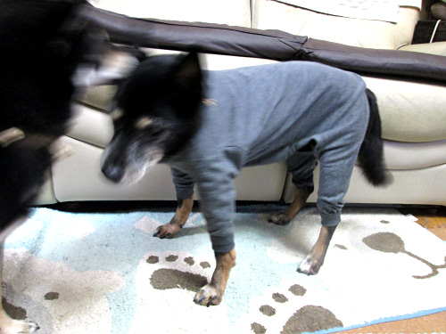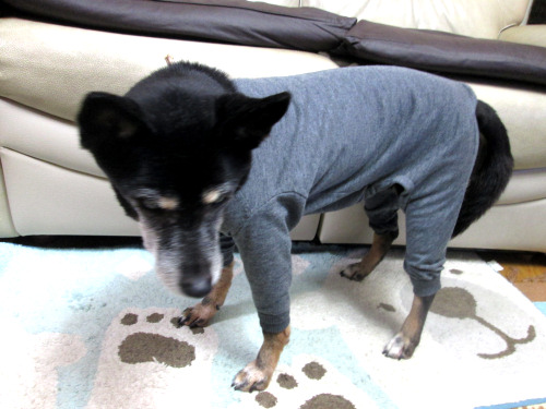 風邪をひかれると困るので、何枚か縫ってやろうと始めたんですが、前の型紙で試作をしながら修正しながらなので、ちゃんとしたものまで何枚も作らなければなりませんでした。