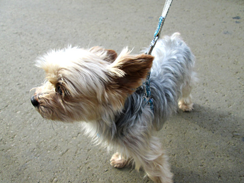 ちっちゃいちっちゃいヨーキーちゃんは、まわりが皆大きいせいか、ちょっと怖い。だけど、カメラを出したらポーズ。