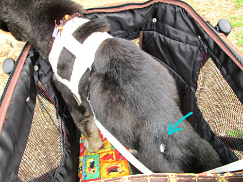 どこを探してもない。地面にもない。ネプ号の中をくまなく探しましたが、それでもない。結局、ネフティーの毛の中に見つけましたが、ネフティーはおかげて一部を鋏で刈り取られました。今日の災難犬。