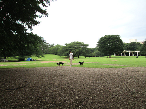 夫婦とおぼしき人たちがそれぞれワンちゃんたちを抱えて歩いていました。こんなに広く気持ちの良い公園なのに、なんで歩かせてあげないんだろう、と不思議に思っていました。ちょうどラブラドールとボールで遊んでいた人の傍を通り過ぎた時、女性がひどくヒステリックな大声をあげたんです。