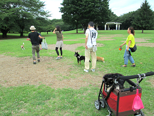朝早くなのに、すでに気温は上がっているようすでしたが、涼しい風が吹いていました。入るとすぐに、あちこちにワンちゃんたちの姿が。