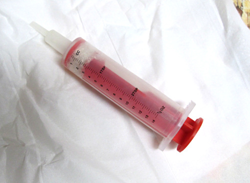 欠けてるし割れてるし、注入すると上に昇ってきます。