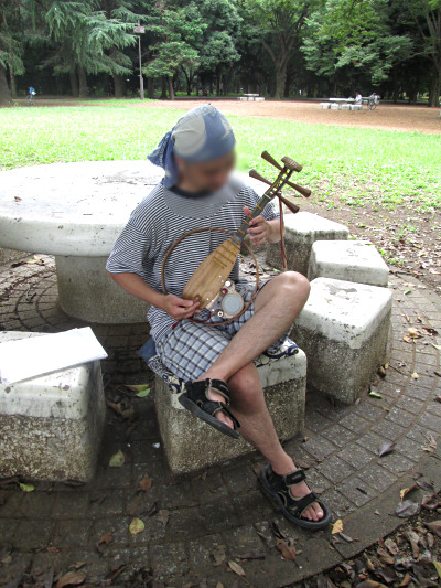 いつもこのへんではいろいろな楽器の練習をしている人たちがいるんですが、隣りに座った方はこんな楽器。