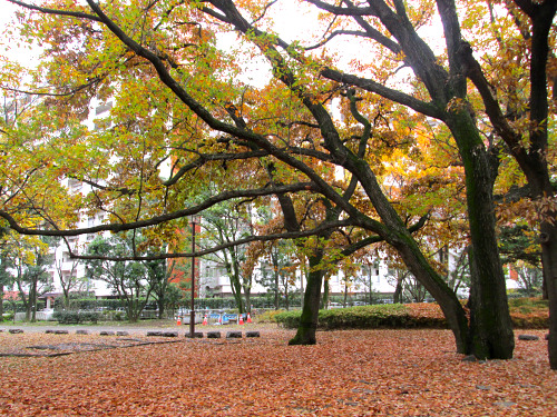 いつもの公園に行こうとしたら、その近くで色鮮やかな紅葉を目にしたので、今日はこちらの公園へ。