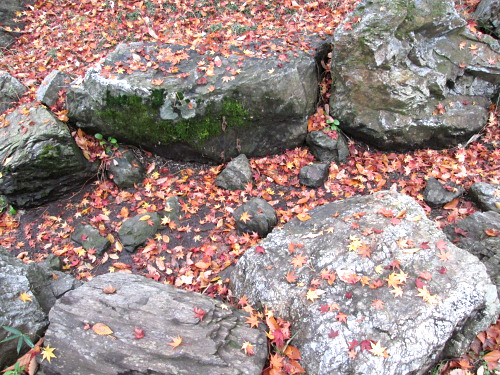 石の上のもみじの葉っぱ。