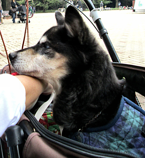 元気な2才の黒柴ちゃん二匹と出会い、飼い主さんとお話しました。