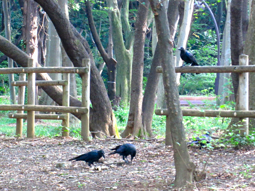 週末は賑わっているバーベキュー場も閑古鳥…ではなく、カラスが鳴いていました。