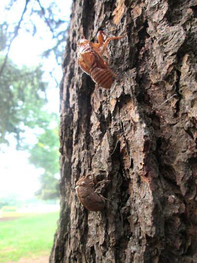 そして木には無数の抜け殻があるんですが、考えてみたらたくさんの蝉の種類がいるわけで。