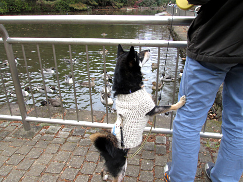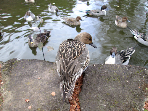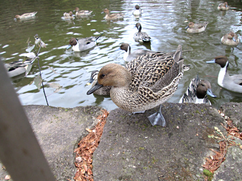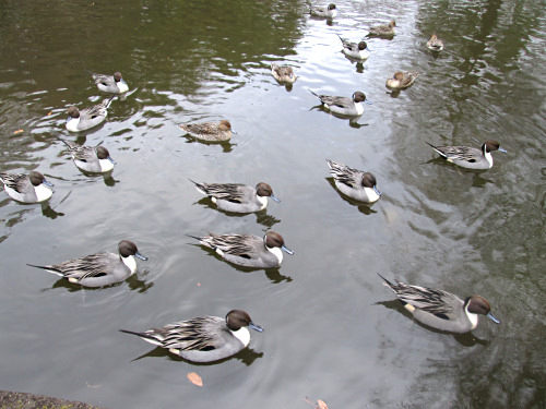 今日もたくさんのカモたちが池に来ていました。