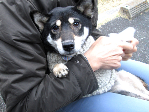 以前に編んだセーターを着てみました。